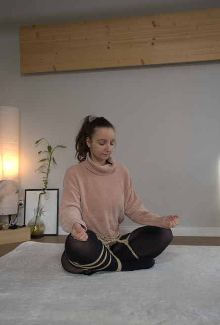 Es geht um Atem & Atemtechniken, körpernahe Achtsamkeitstechniken (wie Bodyscan), pain processing (Schmerzverarbeitung im Seil) und meditative Seil-Übungen.